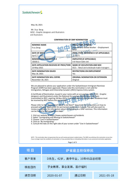 薩省雇主擔(dān)保技術(shù)類別(SNIP International Skilled Worker: Employment Offer) 主要是為了吸引有技術(shù)、學(xué)歷、經(jīng)驗(yàn)的合適海外人才,滿足薩省當(dāng)?shù)鼐蜆I(yè)市場的需求。 以其申請條件要求低,每年約 3500 個(gè)充足的配額, 深受眾多加拿大移民申請人的喜愛。獲得薩省省提名的申請人即有資格向加拿大聯(lián)邦申請永居簽證。