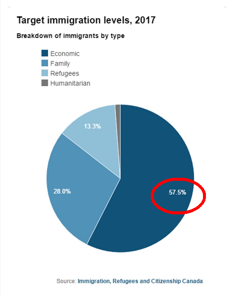經濟類移民占比約57.5%,比2016年增加了11,900個